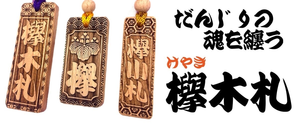 【両面彫り 欅大札】 東北産天然欅を使用した、重厚感あふれる大札。 だんじりの山車にも使われる欅は、硬さと耐久性、美しい木目で“祭り木材の王様”と称される。 職人の手技が際立つ両面彫刻で、粋な屋号や名を刻む。 80×30×7mm の堂々たる存在感。 祭りの記念や贈り物、木札ネックレスにも最適。 ― だんじりの魂を、胸に刻む ― 【完全オーダーメイド】 お好きな名前や文字はもちろん、フォント/デザイン/背景柄/彫り方/裏面デザイン/紐色まで、細部にわたりカスタマイズ可能!世界にたった一つのあなただけの特別な木札をお作りいただけます。 【多彩な用途】 日本の伝統工芸品として、記念品や贈り物にも最適です。 お祭りで活躍する喧嘩札や、青年団の名入れ札、木札ネックレスとして身につけるもよし、厄除け・お守りとして持ち歩くもよし。日本の伝統と風格を感じる逸品です。 【迫力の大札】 8×3センチ/厚さ7ミリの存在感あるサイズ! 手にした瞬間に感じる重厚感と、本物だけが持つ風格をお楽しみください。
