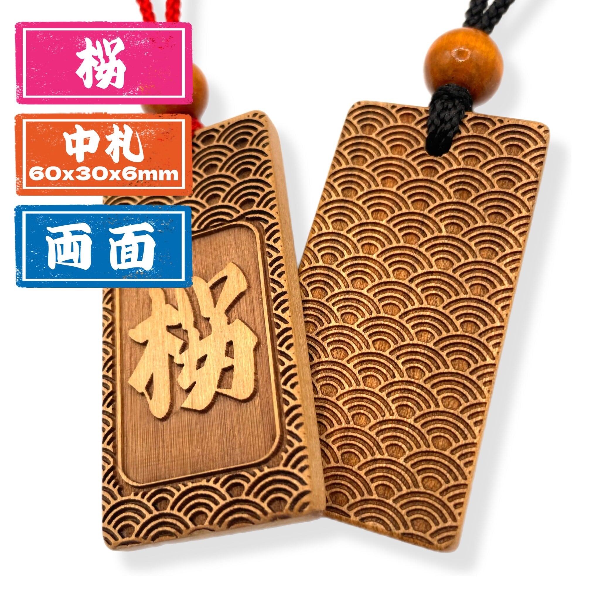 祭りの記念、大切な贈り物、木札ネックレスとしても好評。