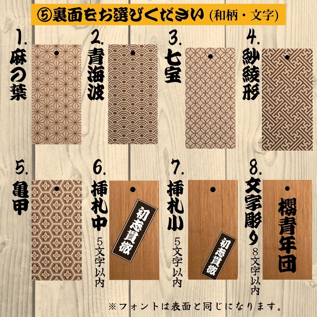 【完全オーダーメイド】 お好きな名前や文字はもちろん、フォント/デザイン/背景柄/彫り方/裏面デザイン/紐色まで、細部にわたりカスタマイズ可能!世界にたった一つのあなただけの特別な木札をお作りいただけます。