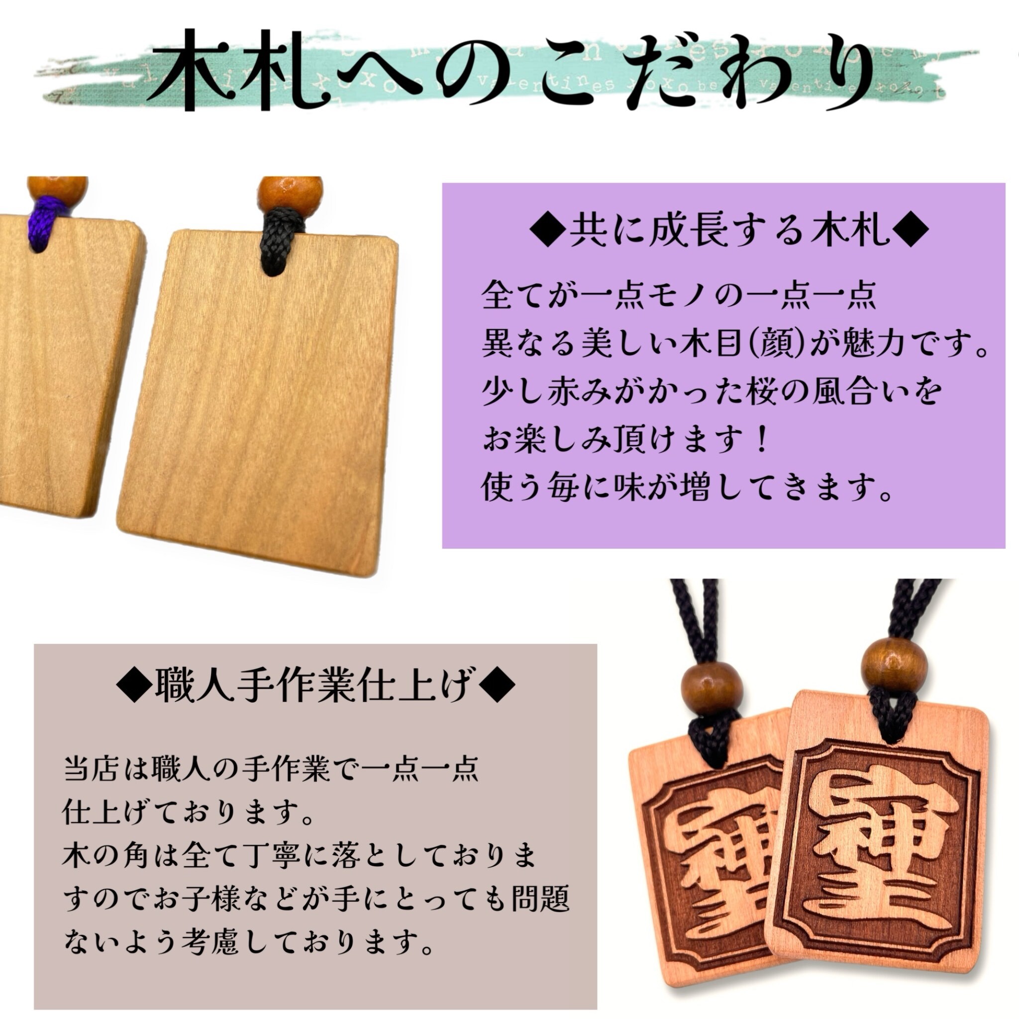 【粋を纏うお守り・贈り物に】 この木札は、首飾りとしてはもちろん、カバンや鍵に添えるアクセサリー、お祭りや日常のお守りとしてもご愛用いただけます。 特に「そしじ」の字が持つ意味は「愛」「感謝」「調和」。贈り物としても最適で、大切な方へのプレゼントや、海外の方へのギフトにも喜ばれる逸品です。