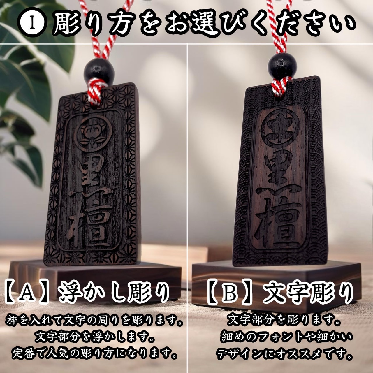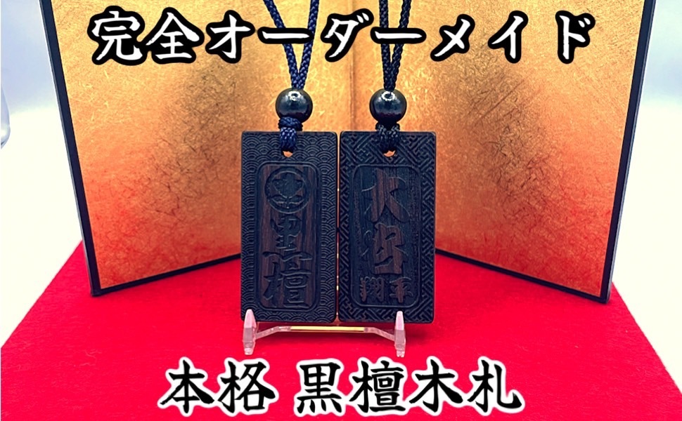 【本格木札】 国産の縞黒檀を使用した、重厚感あふれる本格木札です。 漆黒の地にほのかに赤みを帯びた、美しく力強い木目が浮かび上がり、ひとつとして同じ表情のない“完全一点モノ”。 手に取った瞬間に、素材の格と存在感を感じていただけます。 一点一点、職人の手仕事によって丁寧に仕上げており、細部まで妥協のない仕上がりです。